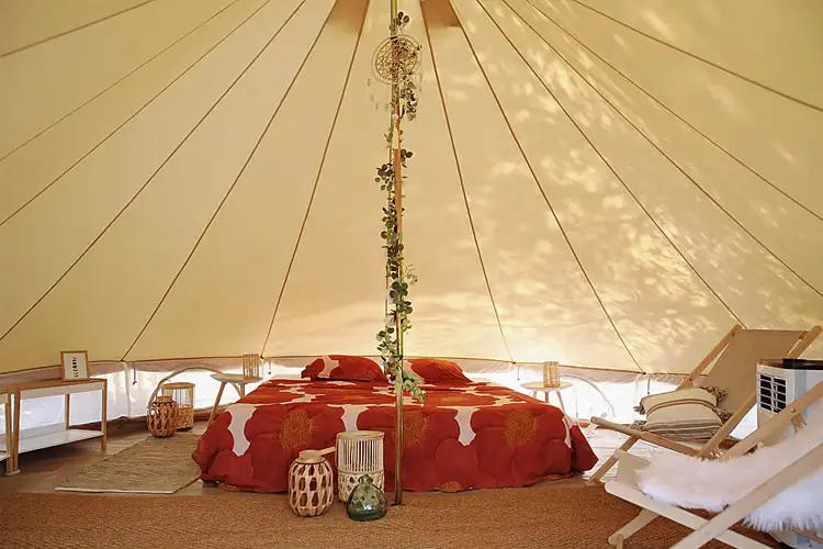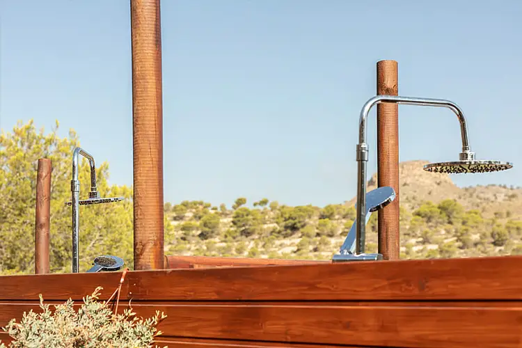 This is a beautiful spacious XL Glamping Tipi tent with a King size bed of 180cm. You can open the walls completely and leave just the nets around the Tipi, to enjoy the view and nature all around you. It has an amazing outdoor bathroom with incredible views. It has two showers, two toilets, and two sinks. You can also use the bathroom inside the house if you prefer. Fully air conditioned in hot weather.