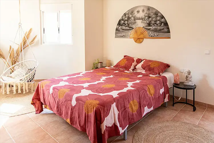 A beautiful spacious private bedroom with Queen size bed of 150cm. Attached to the room you have a private bathroom and a door to your own big private terrace, with mountain views.